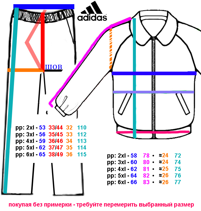 покупая в интернете для молодого крупного парня спортивный костюм Adidas эластик требуйте его замеров