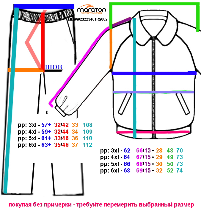 Покупая без примерки лёгкий спортивный костюм Maraton батального размера из тонкой натуральной ткани требуйте его замеров.