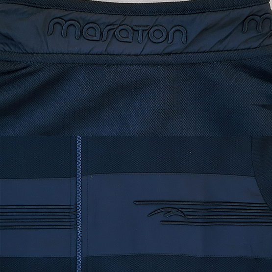 По воротнику "стойка" и на груди вышивка, чёрным по чёрному. С правильным уходом ткань не потеряет упругости, цвет насыщенности.