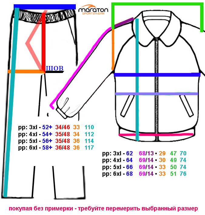 Покупая без примерки зимний спортивный костюм Maraton батального размера чёрного цвета требуйте важных Вам замеров.