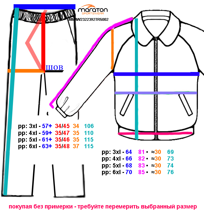 Покупая без примерки тонкий спортивный костюм Maraton батального размера для занятия в тренажёрном зале требуйте его замеров.